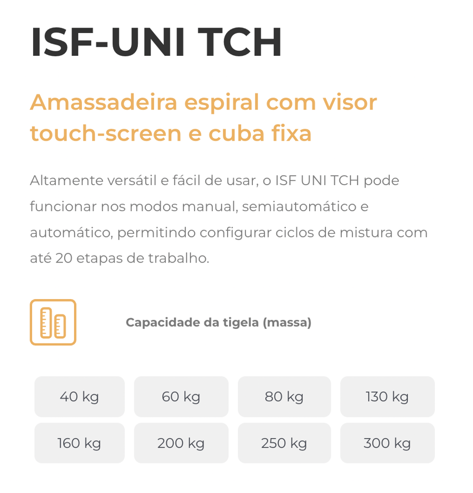 Altamente versátil e fácil de usar, o ISF UNI TCH pode funcionar nos modos manual, semiautomático e automático, permitindo configurar ciclos de mistura com até 20 etapas de trabalho.
