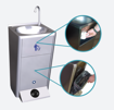 Fabricado totalmente em aço inox, com torneira activada por sistema automático de pedal, controlando assim o consumo de água.Contém reservatórios internos.Não necessita de instalção nem ligações externas.Pode colocar água aquecida dentro do reservatório.Com um design de linhas direitas e bastante actuais, é um dos aparelhos de durabilidade ilimitada que se adapta a qualquer espaço ou situação.Características Técnicas: